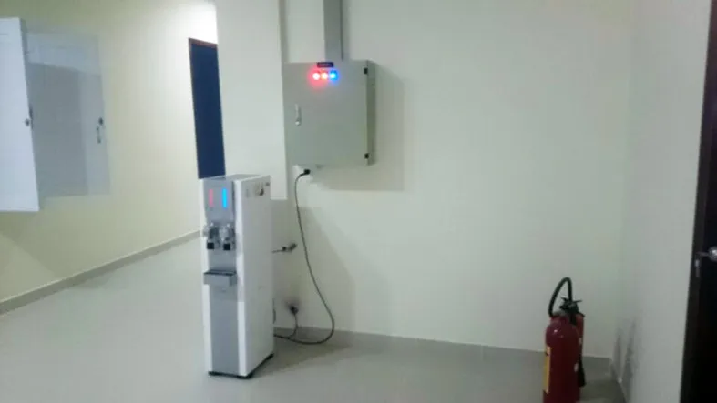 Máy nước nóng và bình chữa cháy đặt ở hành lang KTX